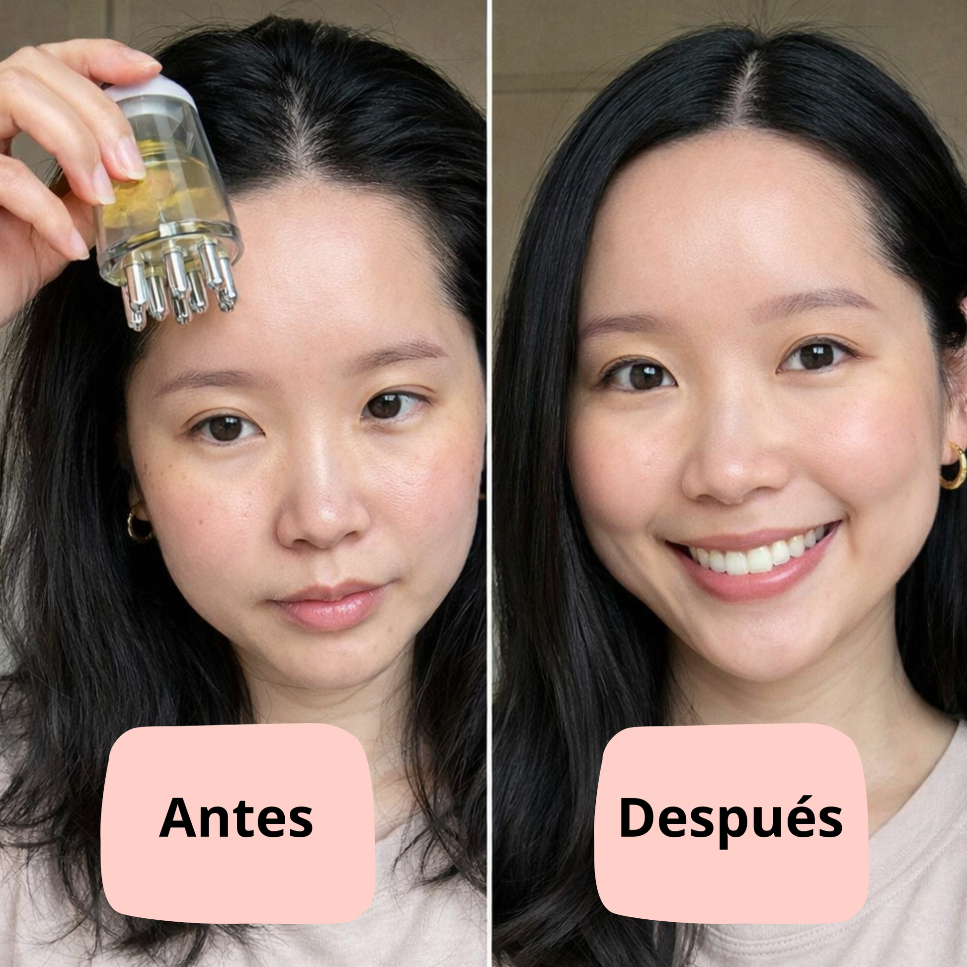 Aplica el aceite directamente en el cuero cabelludo con una distribución precisa y uniforme. Su cabezal esférico sellado masajea suavemente y libera solo la cantidad necesaria, sin fugas. Control total en cada uso, fácil de limpiar y perfecto para usar en casa o llevar contigo.